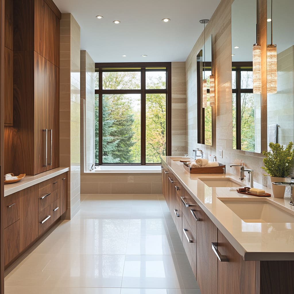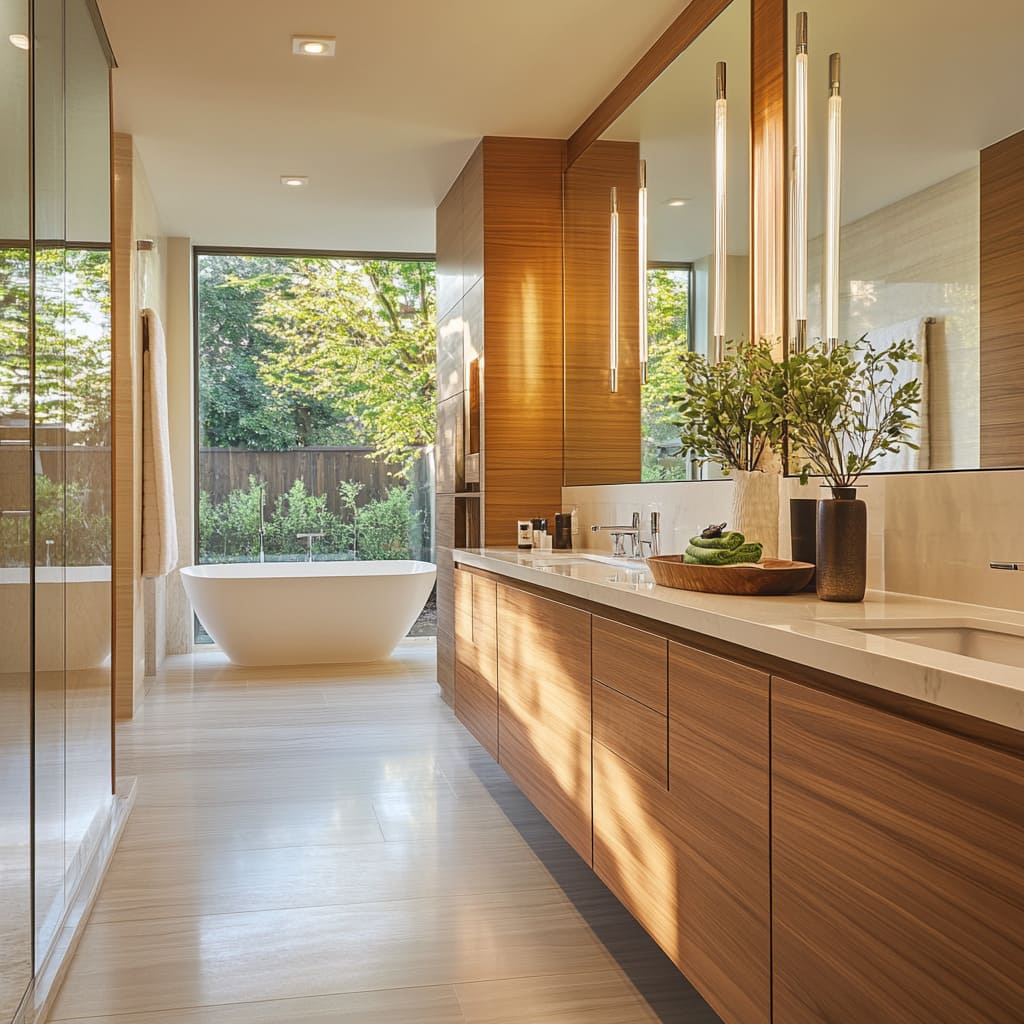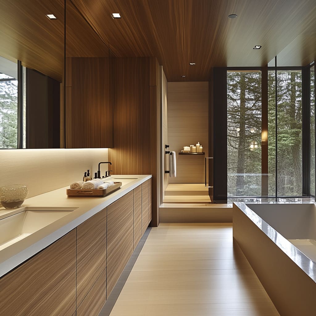 Together, these elements help modern wood bathroom ideas feel calm and grounded. The bathroom becomes a space where warm surfaces, soft daylight, and natural forms blend into a coherent visual environment that celebrates the quiet presence of wood.