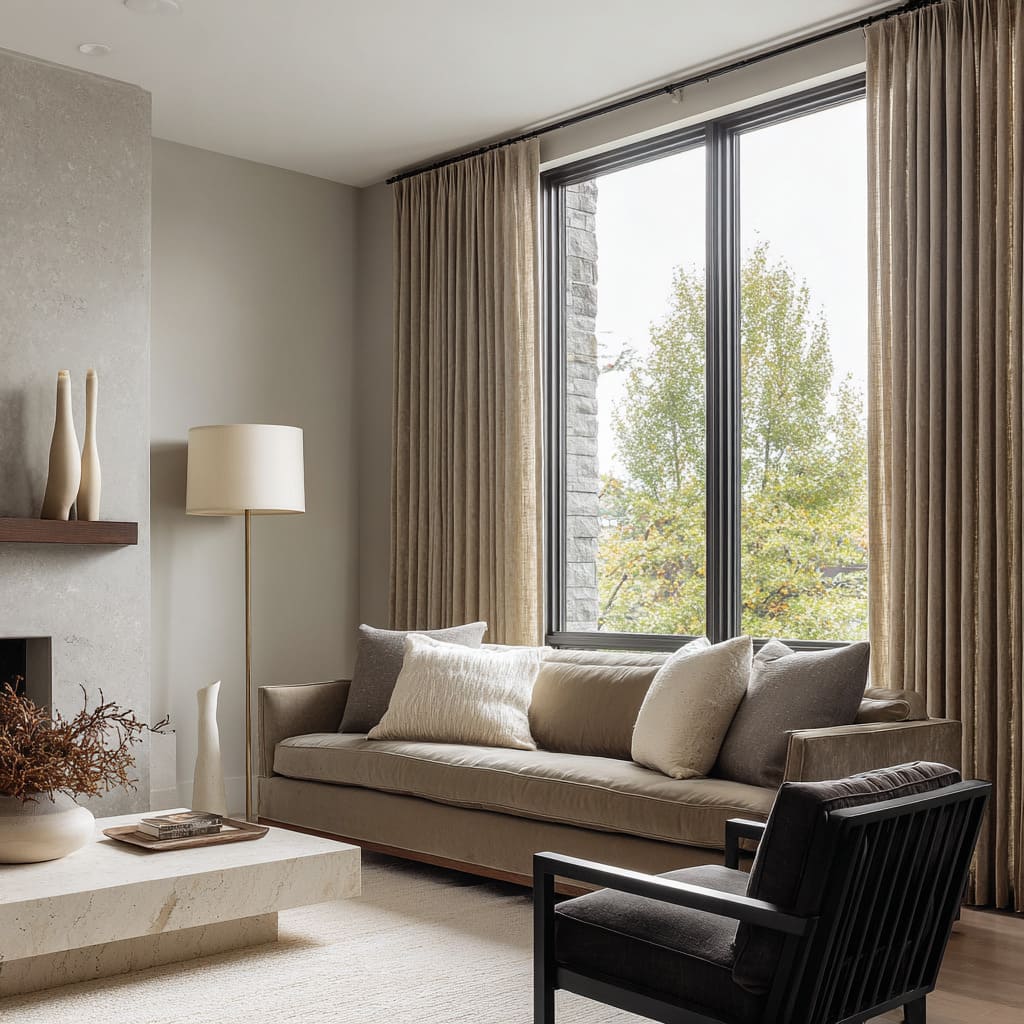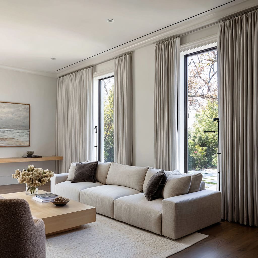 When observing the evolution of drapery ideas for living room windows, what emerges is a shift toward drapery as a unifying, atmospheric, and architectural force. The fabric is not defined by its hardware or its function alone; instead, it behaves as a soft plane that alters mood, reframes views, aligns with landscape tones, and clarifies interior proportions.