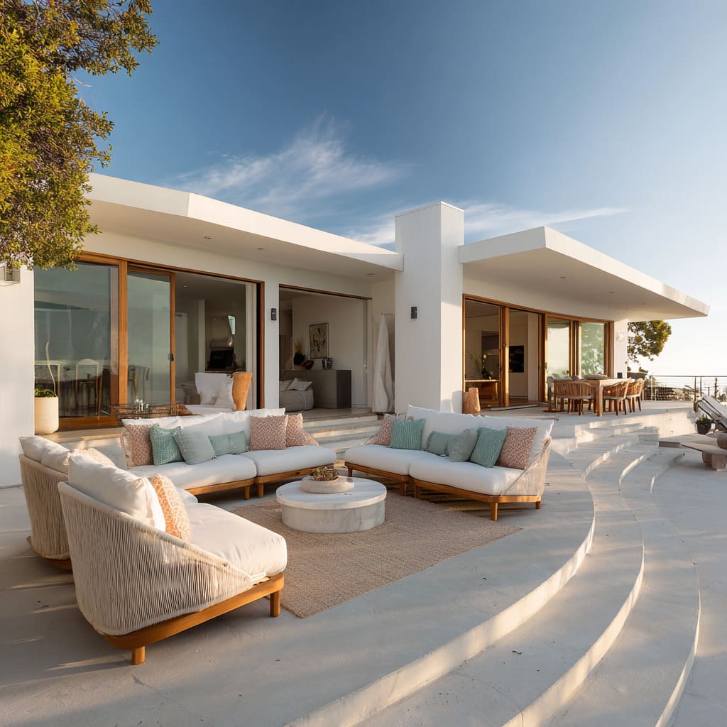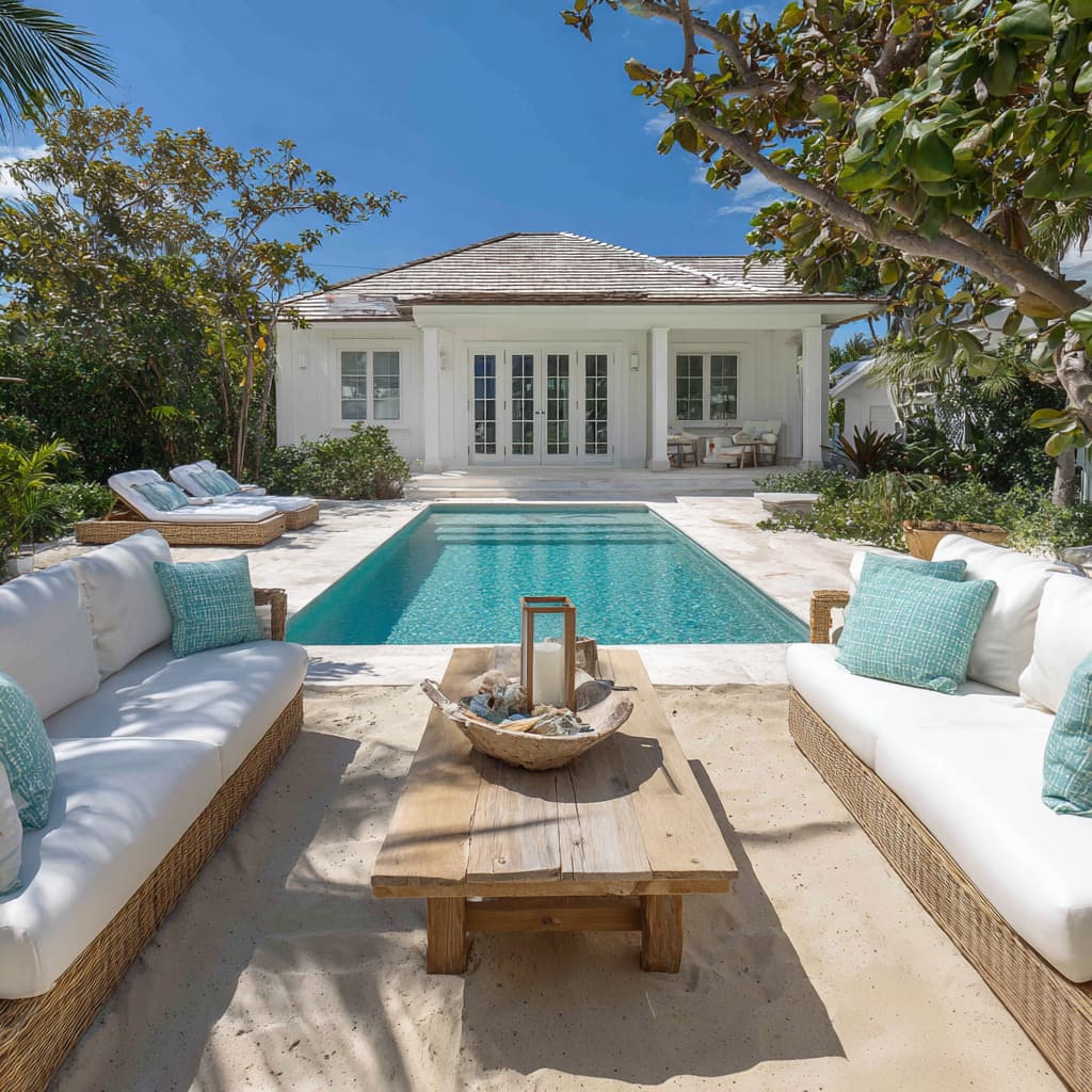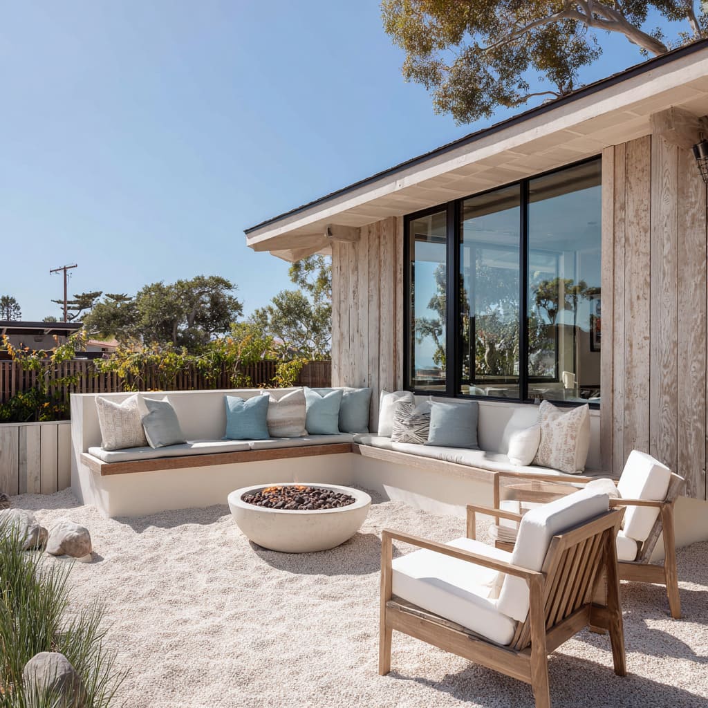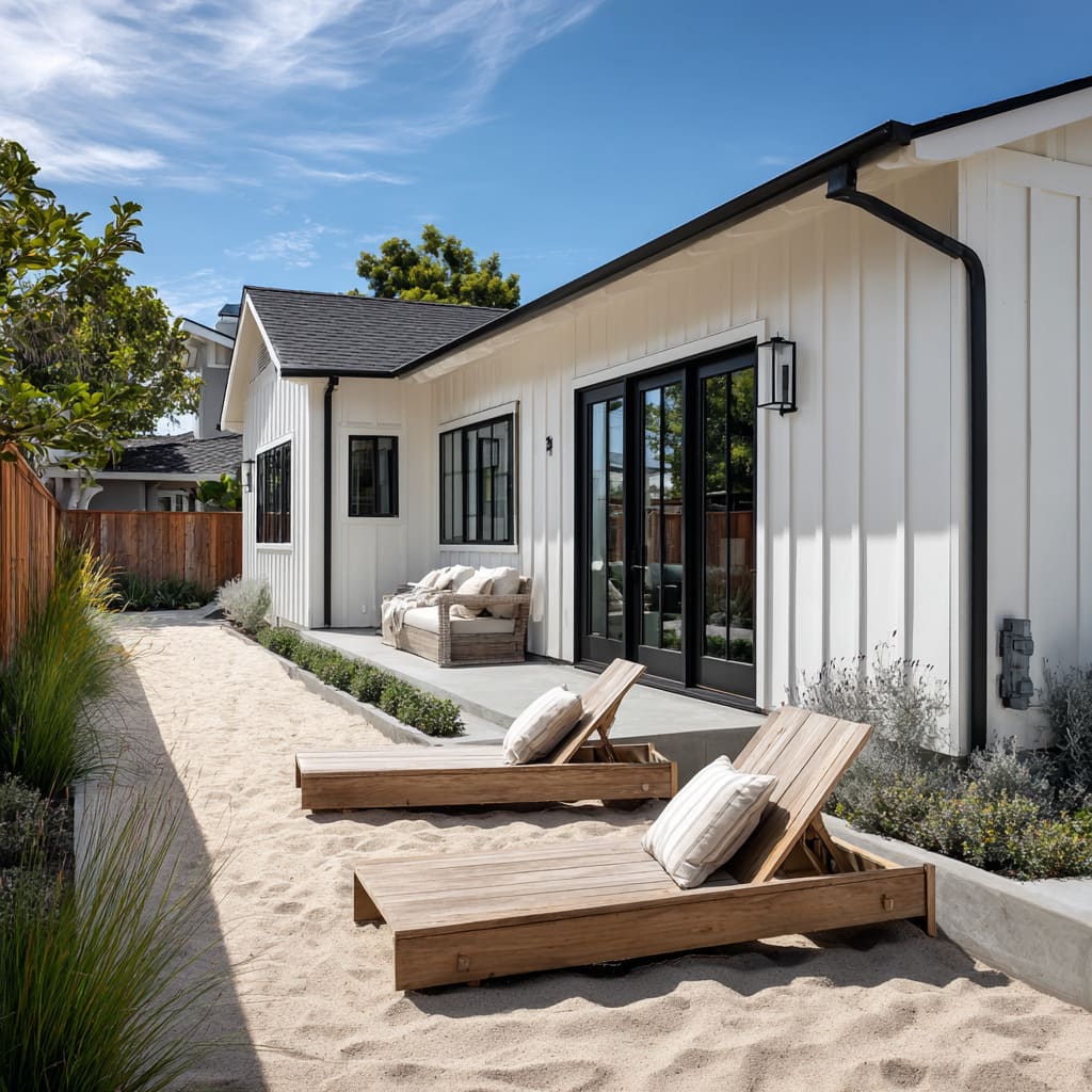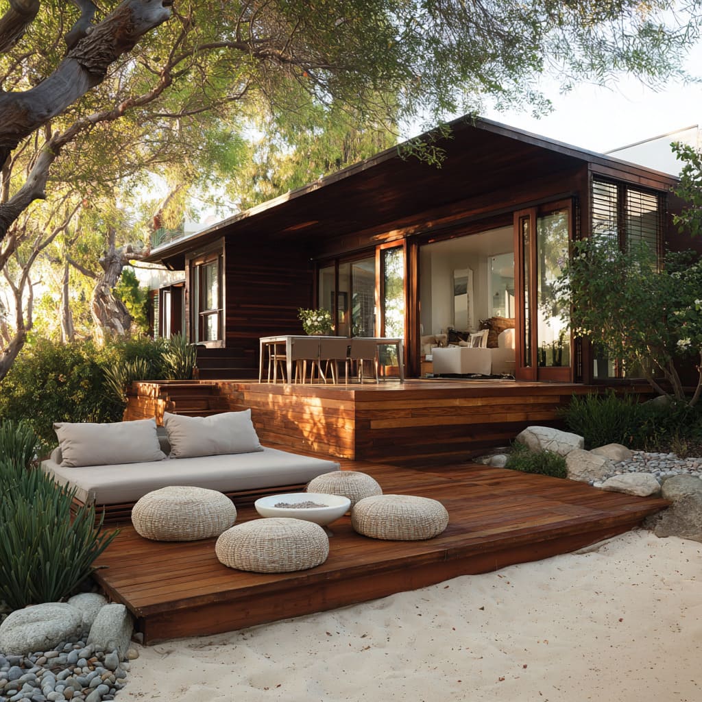 Flat sand planes right against a house or deck act like oversized outdoor rugs, inviting seating, daybeds, or a low dining set. These layouts blur the boundary between interior and exterior zones.