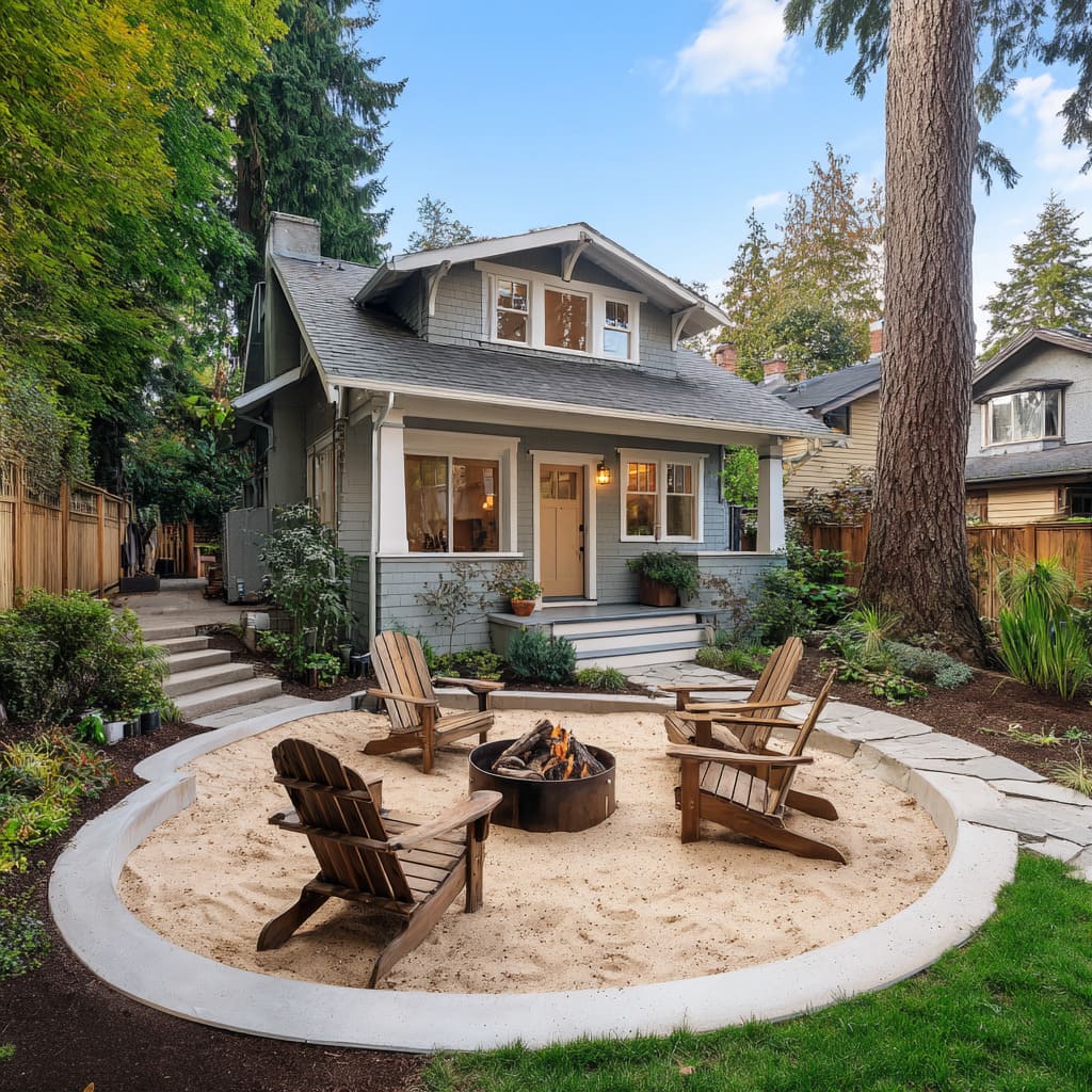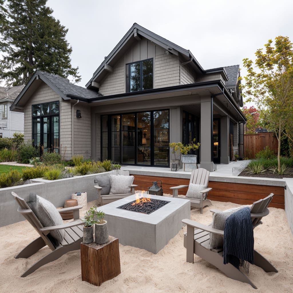 Sand and fire naturally complement each other, which explains the popularity of backyard sand fire pit ideas in modern outdoor planning. Sand tempers the brightness of flames while giving the space an immediate sense of coziness and openness.
