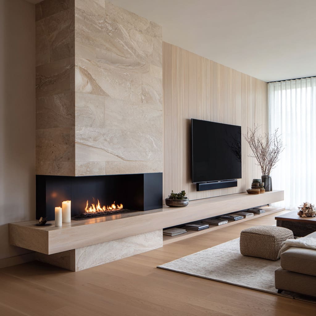 And that’s the real reason fireplace with stone ideas feel like they belong in modern rooms: stone isn’t treated as an add-on. It’s treated as the room’s organizing surface—calm enough to hold everything, rich enough to finish the space, and precise enough to keep the mood clean and current.