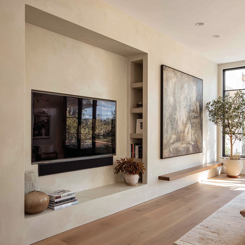 - The TV then reads like a temporary overlay, not the purpose of the wall.